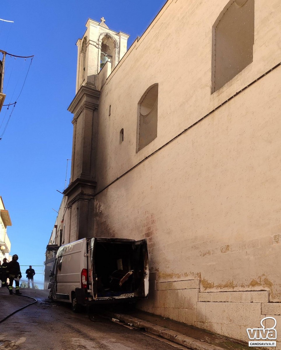 Furgone in fiamme in via Nino Bixio, accanto alla Rettoria della Passione