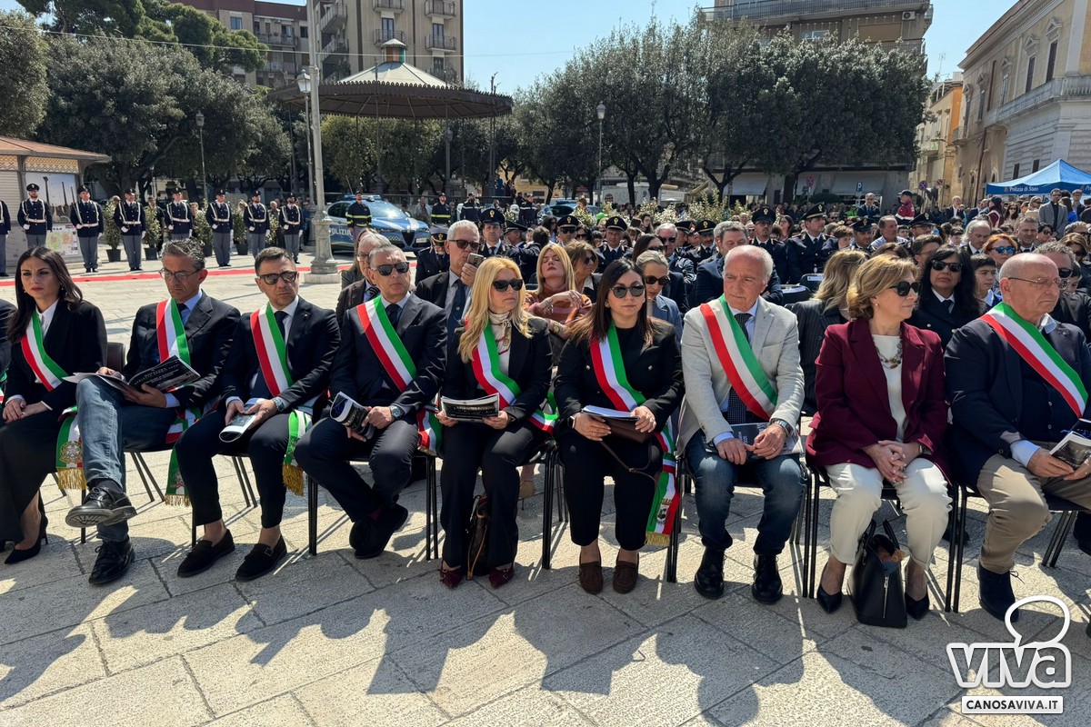 Come ogni anno, oggi, 10 aprile, si è celebrato il 174° anniversario della Polizia di Stato - nata nel 1854 - e il quinto anniversario della Questura della BAT. La cerimonia di quest'anno si è svolta a Canosa di Puglia, in Piazza Vittorio Veneto, alla presenza del Questore della BAT, Alfredo Fabbrocini, del Prefetto Flavia Anania, dei sindaci della BAT, delle autorità militari locali, insieme alle unità cinofile e delle più alte cariche a livello provinciale. Numerosi sono stati anche i cittadini e gli studenti delle scuole che hanno partecipato.