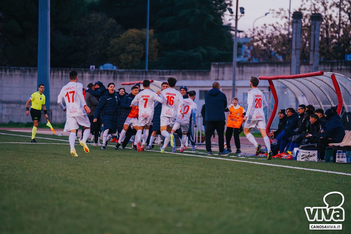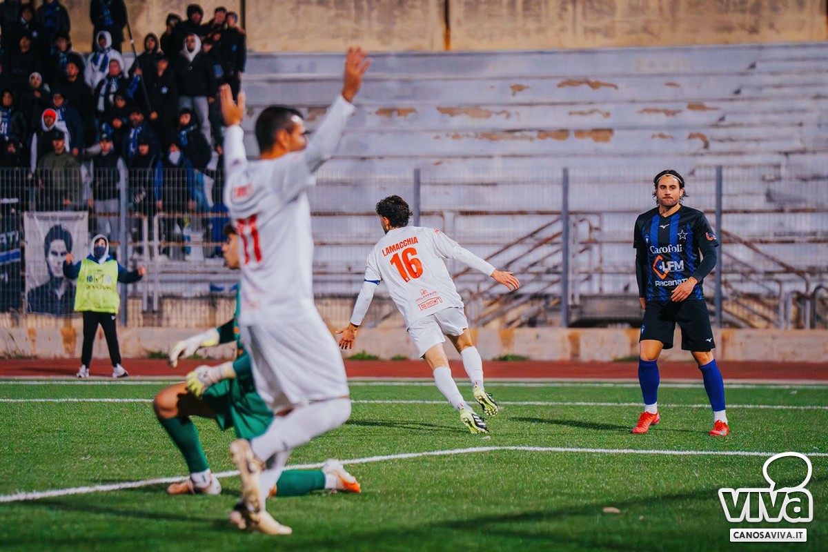 Un Canosa forte in tutti i suoi elementi, con lo splendido Lamacchia ancora una volta autore di un gol pesante e decisivo, e con il giovane Iagulli lì, con il suo gol, a voler dimostrare di non essere titolare nel Canosa solo a causa di un regolamento quanto mai discutibile.