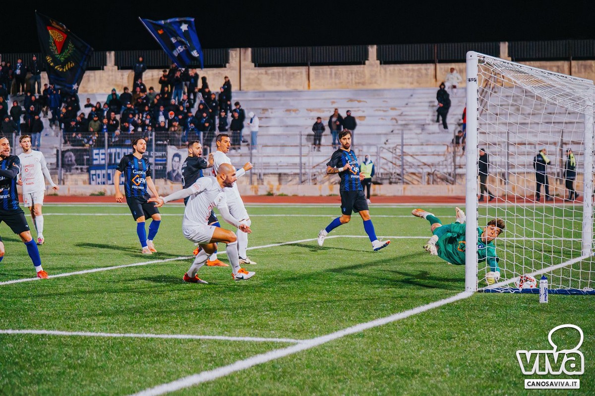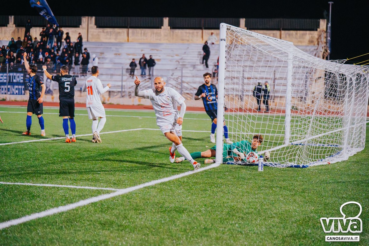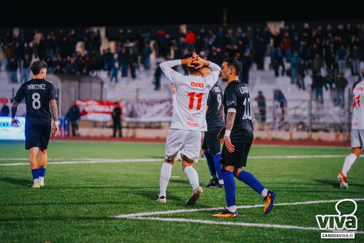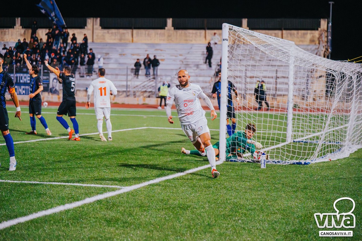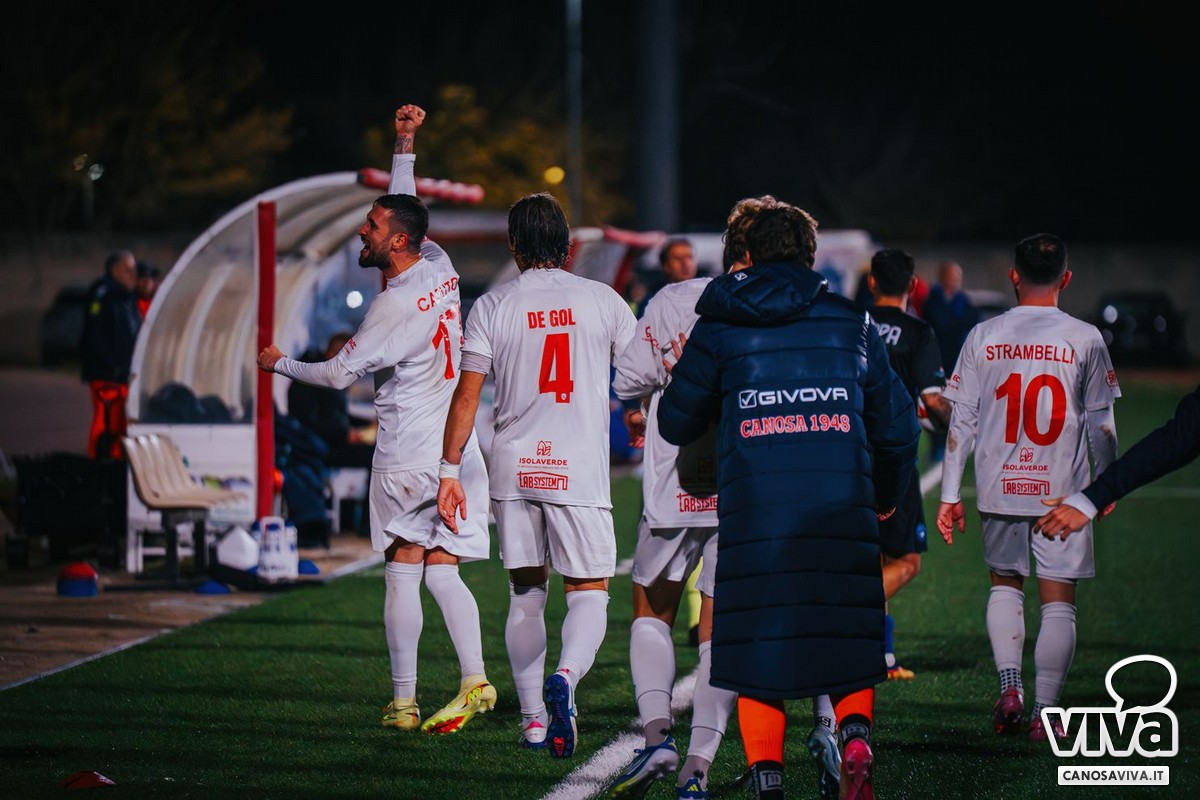 Ma oltre all'ennesima gemma dell'ex numero dieci di Barletta, Fidelis Andria e Casarano, c'è da rimarcare la prestazione a dir poco maiuscola di un Canosa quanto mai deciso a iscrivere le gerarchie di un campionato dove un po' tutti vedono i rossoblu di De Candia come la meno forte delle "fab four".